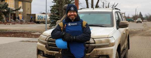 ©WFP/Sayed Asif Mahmud Oleg Kemin from the UN World Food Programme (WFP) stands in front of his vehicle in Kherson, Ukraine. Humanitarian Aid